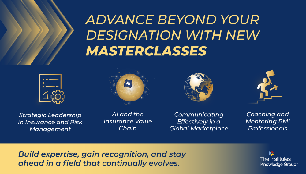 The risk management and insurance (RMI) landscape is transforming at a rapid pace. Experienced professionals are retiring at a high rate, AI is revolutionizing almost every function from underwriting to claims, and teams are becoming more global. If you've earned an Institutes Designation, you've already built a solid foundation, but keeping your skills sharp requires continuous growth.